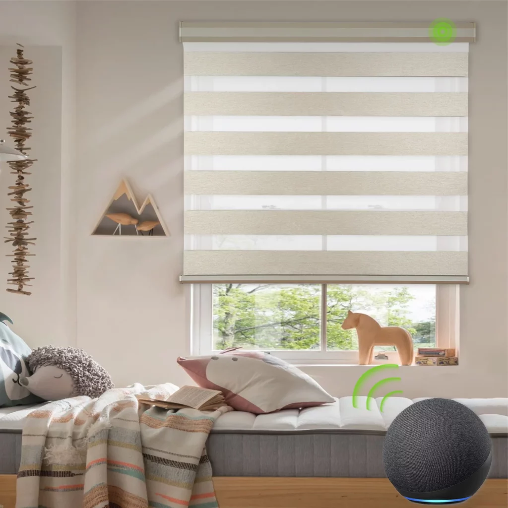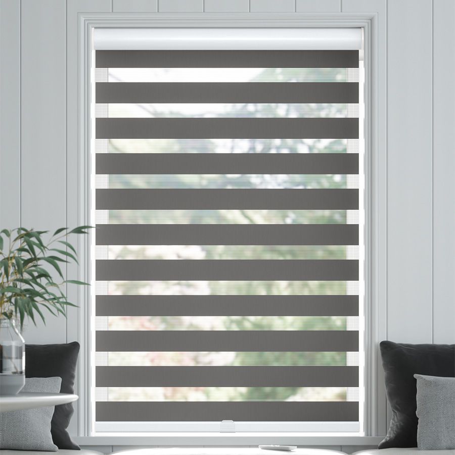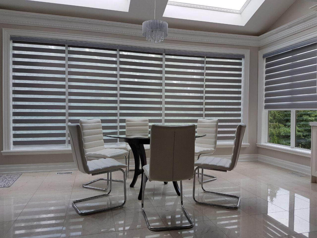 Dual sheer shades are made from one piece of fabric with alternating translucent and light-filtering or room darkening material stripes. These shades offer a modern look with exceptional light control.